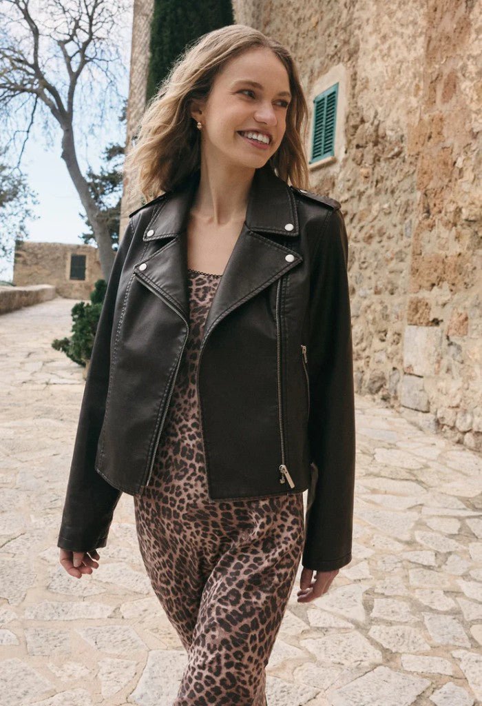 Soft, supple faux leather gives this moto jacket a clean, modern feel, with a zip front and functional zipper pockets. It’s a statement layer you’ll throw on over everything, from floaty dresses to your favorite denim.