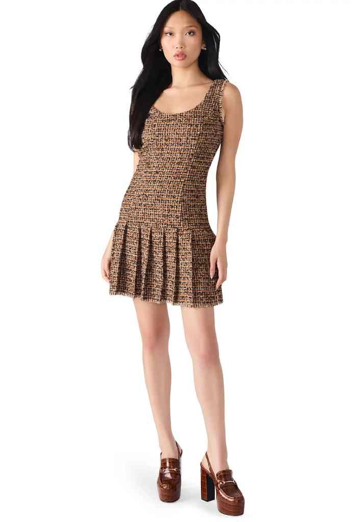 Step into a chic look with the Avie Dress. Designed to blend playful charm with effortless elegance. The scoop neckline frames your neck beautifully, while the drop waist transitions into a pleated skirt that adds movement and flirty sophistication.