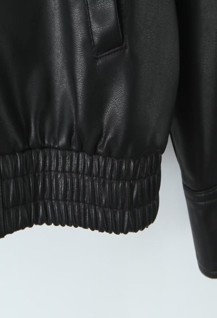 A chill is in the air and we don’t have a care in our Cora Jacket. Cool as can be, this stylish bomber jacket features a sleek faux leather design with a collared neckline, elastic hem and side pockets. Layer it over your favorite graphic tees, sweaters and dresses.