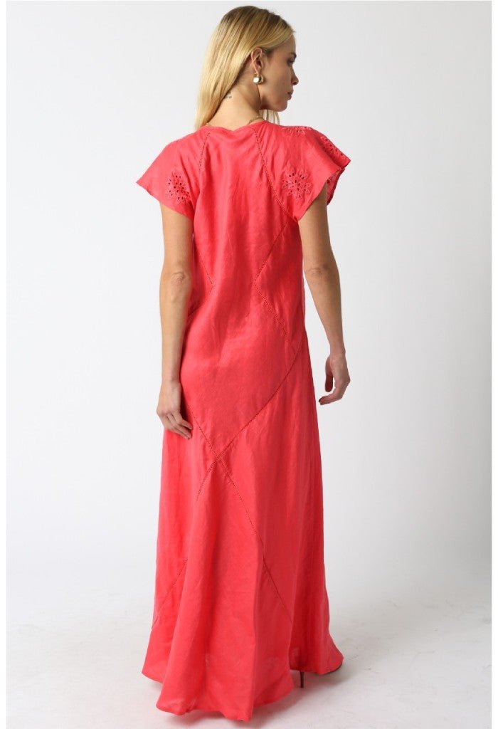 Exude major main squeeze energy in the Fruit Punch Maxi Dress! A bold coral hue, flutter sleeves and gorgeous embroidery makes this the ultimate one-and-done outfit. Complete your look with a chic clutch, cute hoops and heels for a date night, wedding, or vacay.