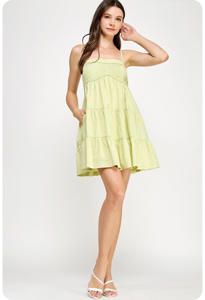 Take it easy in the Honeydew Mini Dress. This adorable babydoll dress features a flowy tiered design with side pockets, pintuck detail and a smocked bust. Slip it on with sunnies and comfy sandals or tennis shoes for an effortlessly chic look.