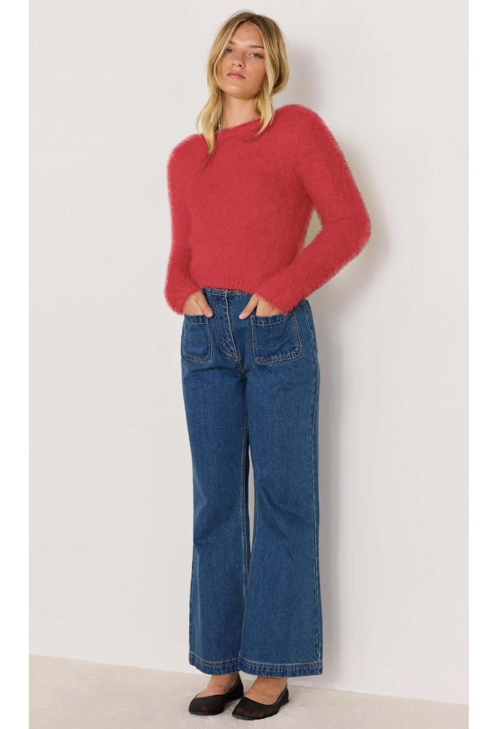 Soft, fuzzy, and full of attitude – the Irena Fluffy Sweater is your new go-to for cosy statement dressing. In a bold red, it ads a pop of color to denim or your favorite mini skirt. An easy way to brighten up chilly days.