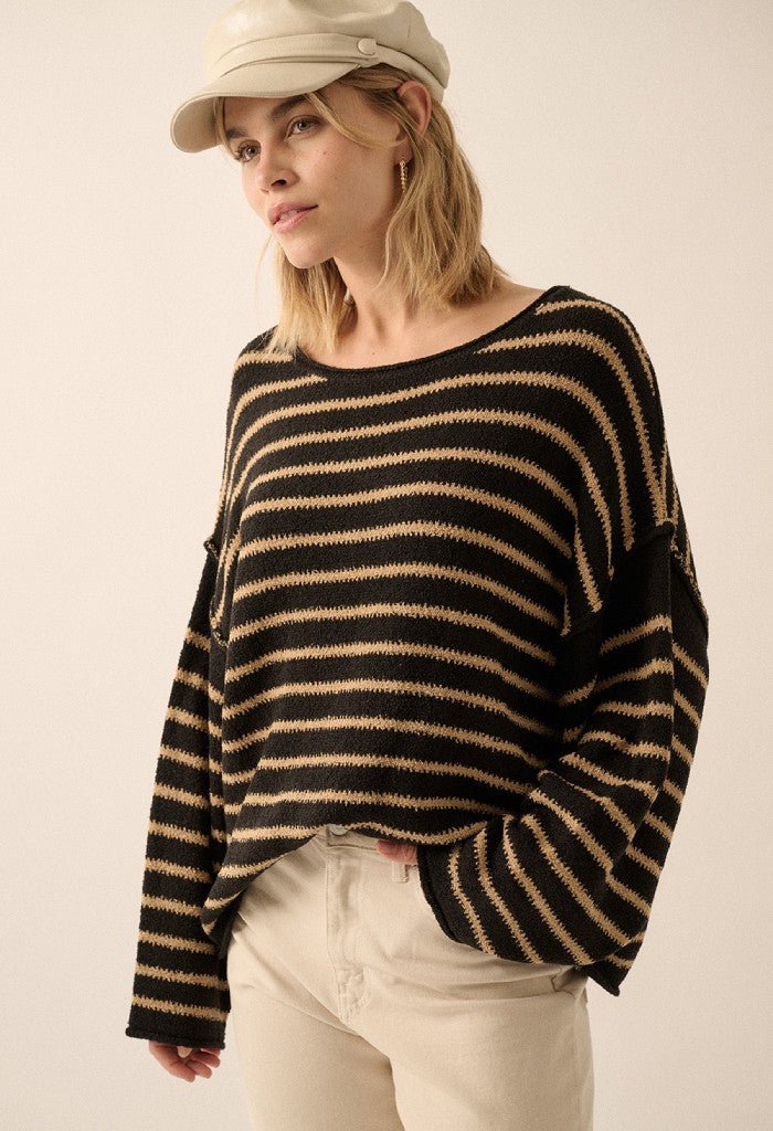 Effortlessly chic, the Loren Sweater is the perfect addition to your wardrobe. Timeless stripes with a textured knit and relaxed fit makes this sweater comfy and cute. Throw it on with your fave jeans or leggings for a laidback vibe.