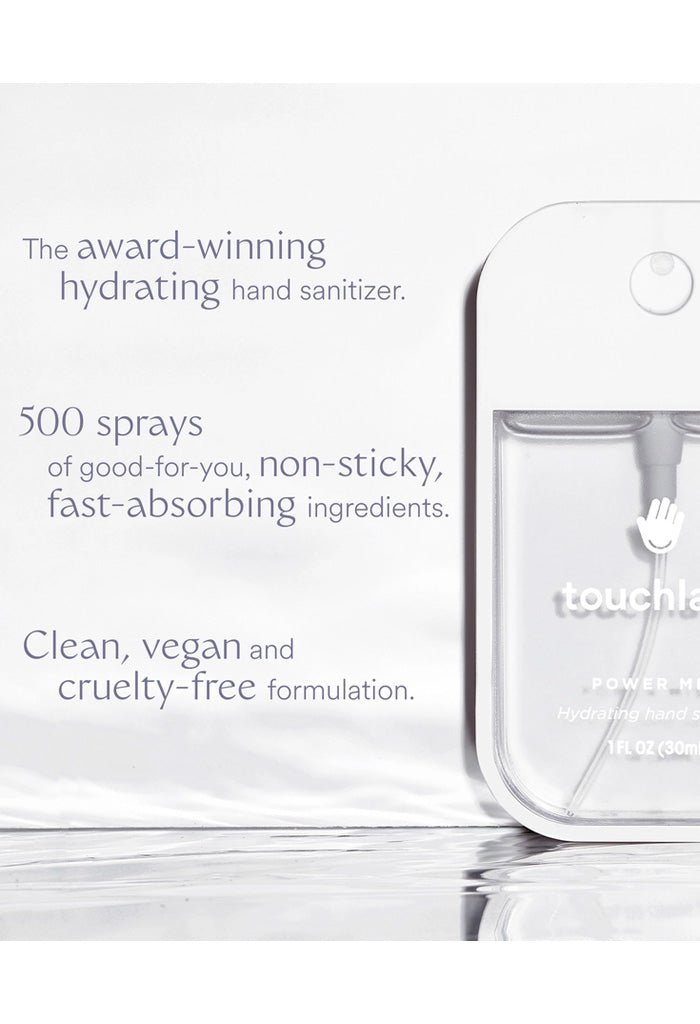 The award-winning hydrating hand sanitizer mist that feels as good as it looks. Say so long to sticky, goopy hand sanitizers, and hello to our really good, really cute hand sanitizing mist that not only cleans your hands, but makes them soft to touch, and smell good, too. Every bottle of Touchland Power Mist is packed with good-for-you, vegan, and not-sticky ingredients like Aloe Vera and essential oils that spritz lightly and evenly to keep your hands happy.