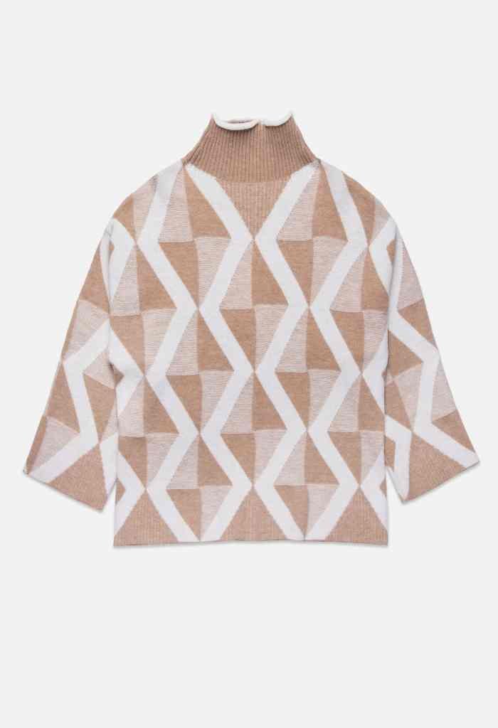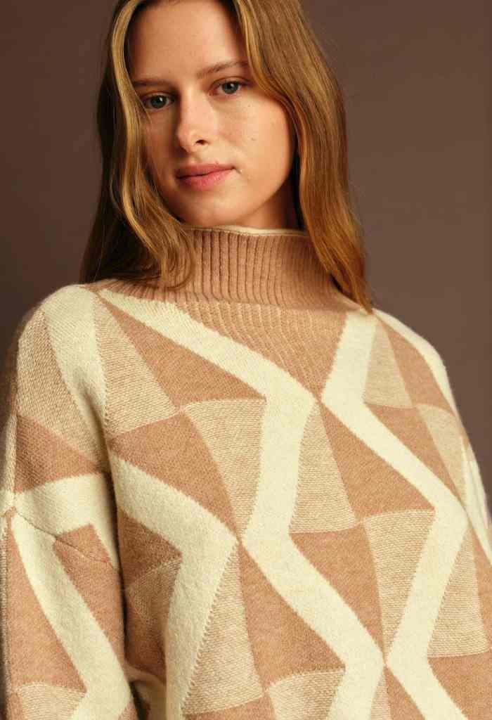 • Elevate your ootd with the Troy Turtleneck Sweater. Effortlessly chic, this stylish pullover features a comfy relaxed fit with wide sleeves and jacquard geo print. Throw on with sleek pants or your fave denim and boots when you’re on the go!